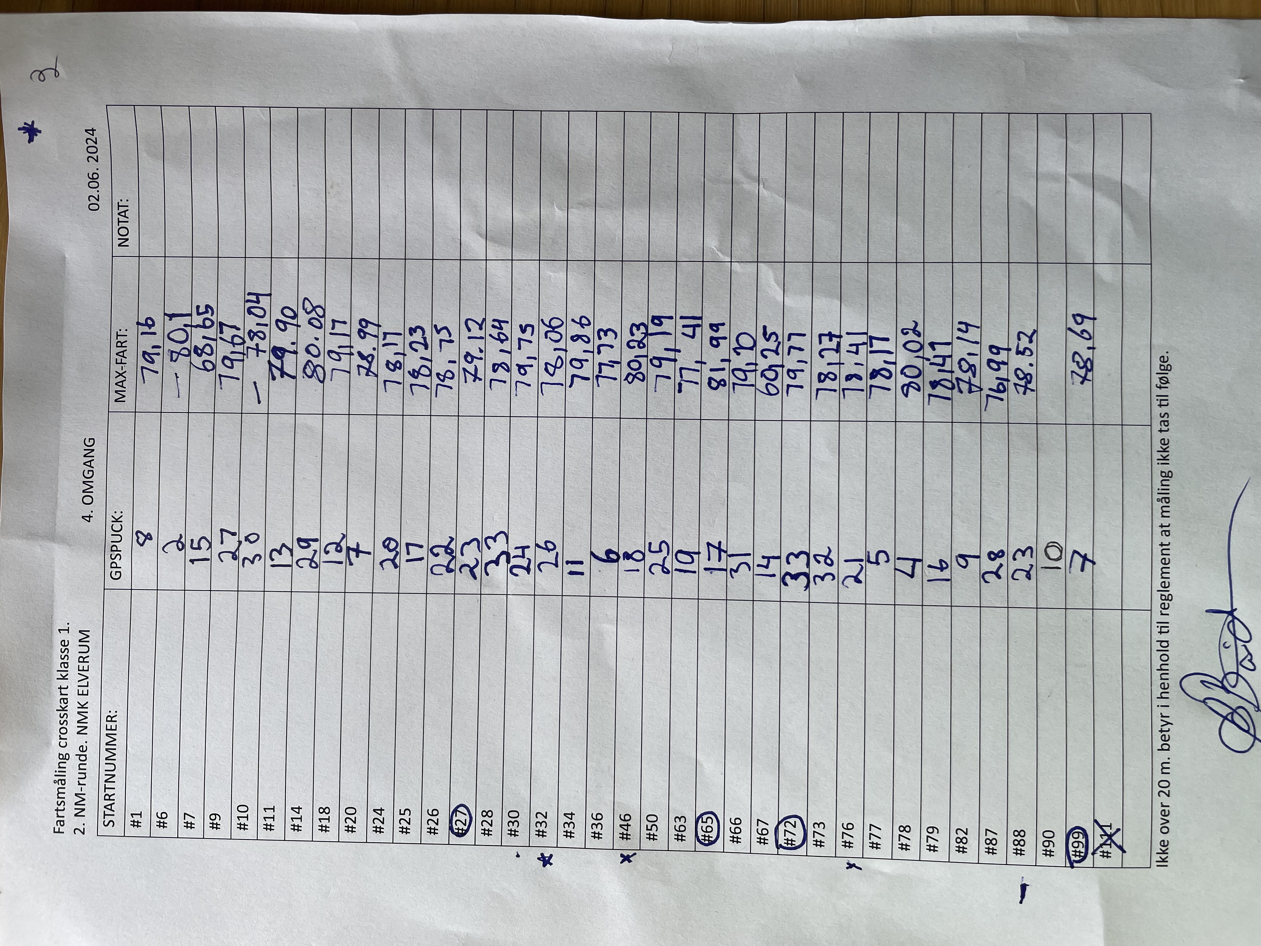 Fartsmålinger crosskart klasse 1