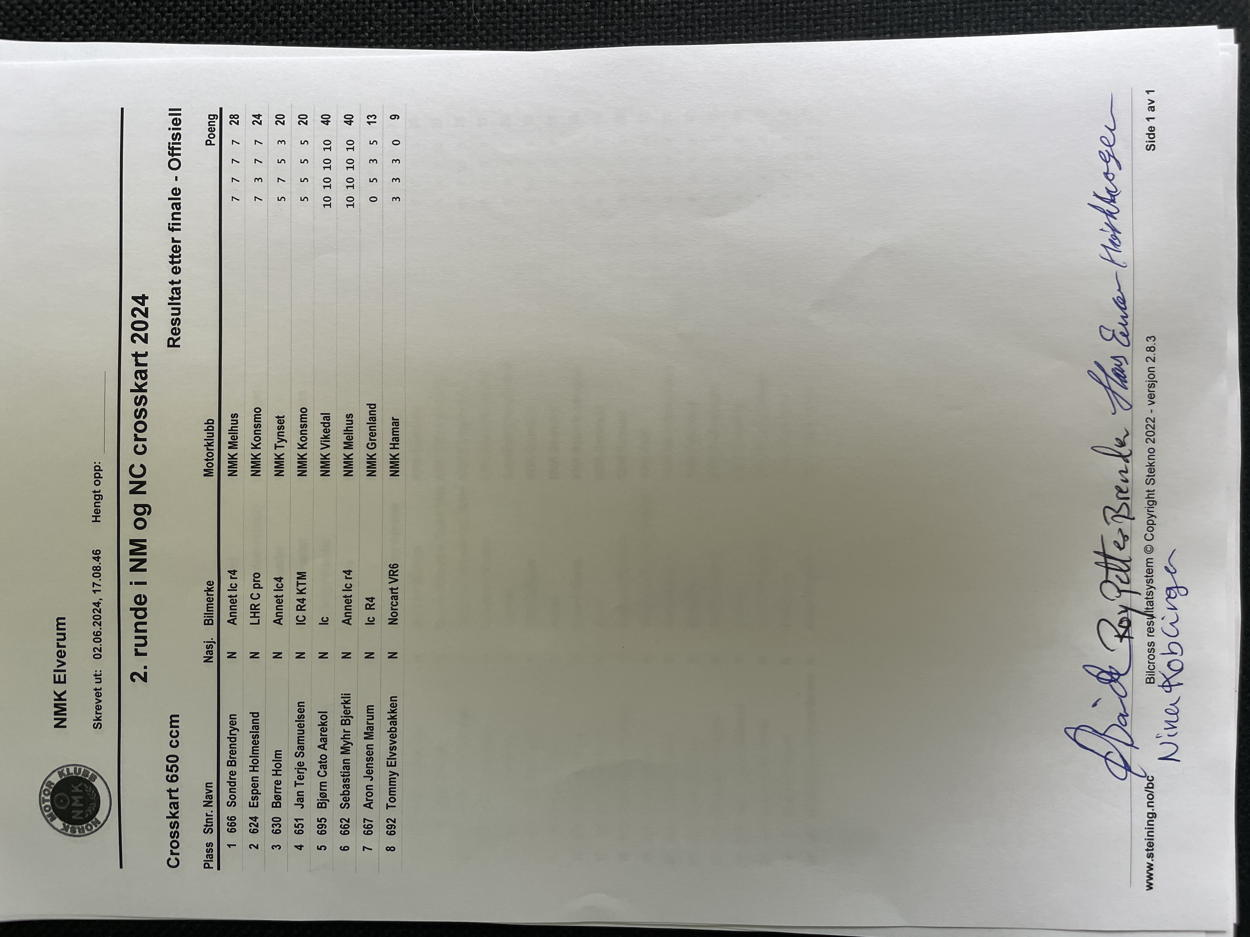 Offisiell resultatliste - 650 ccm