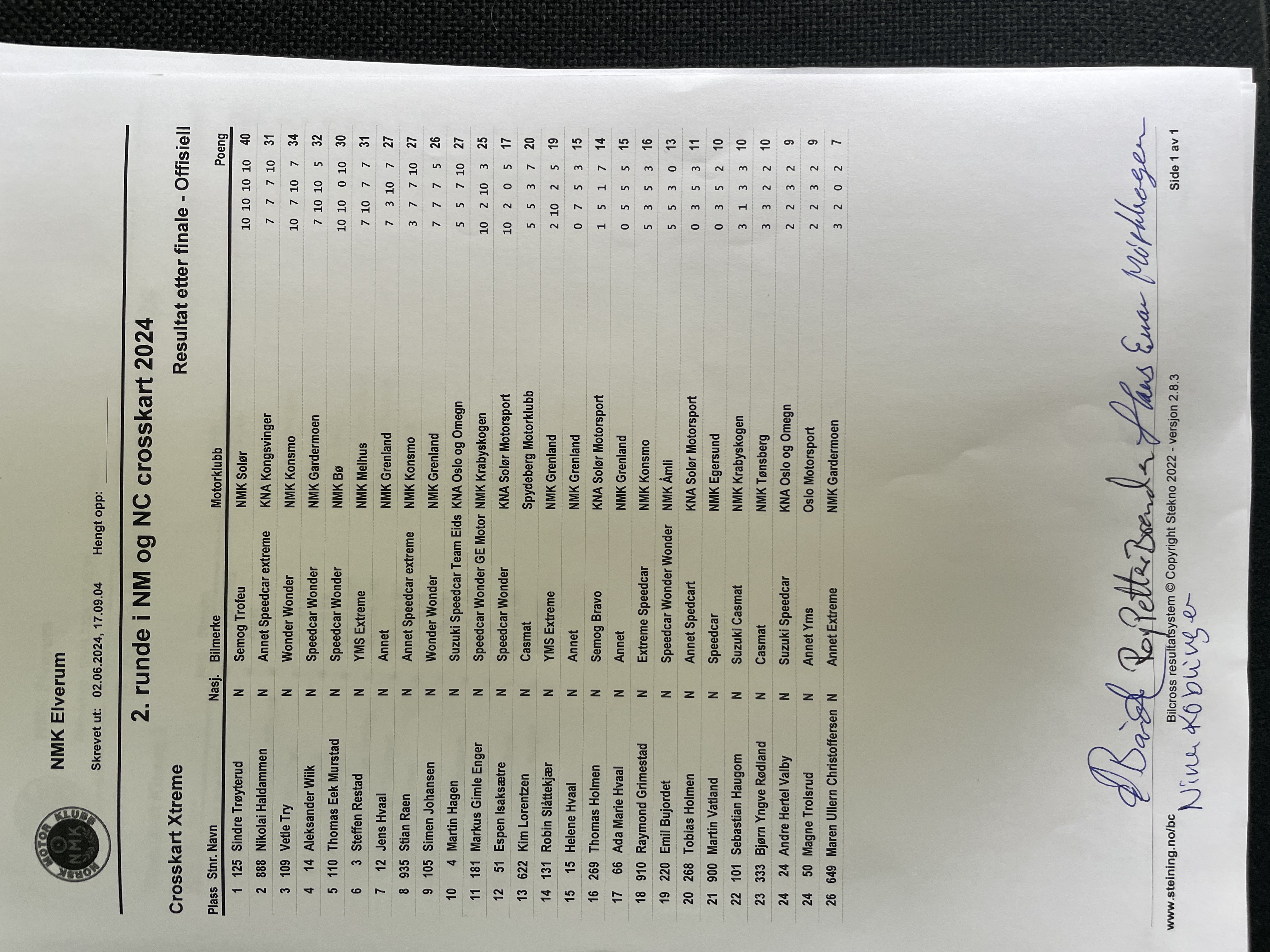 Offisiell resultatliste - Xtreme Jr