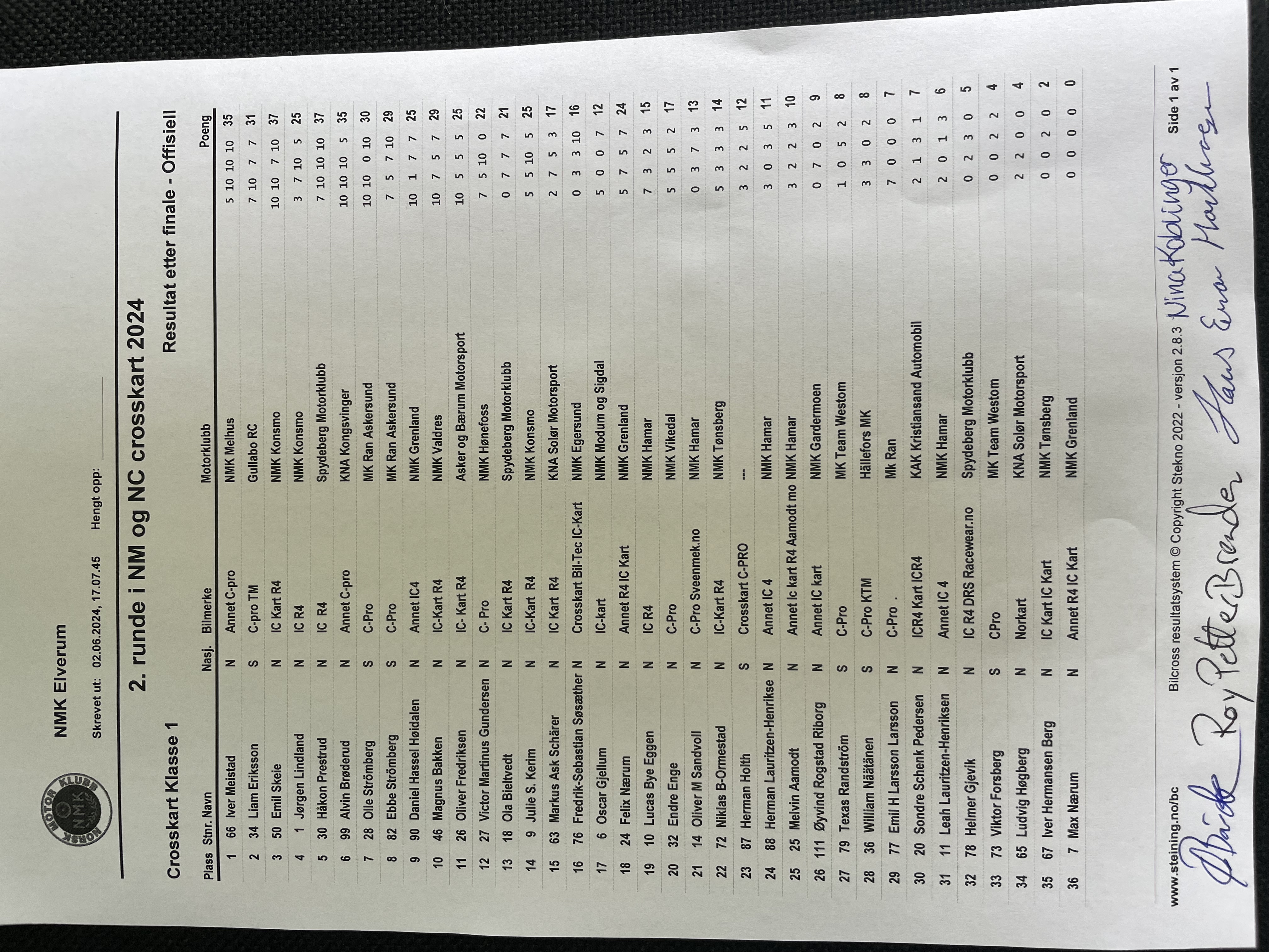 Offisiell resultatliste - Klasse 1